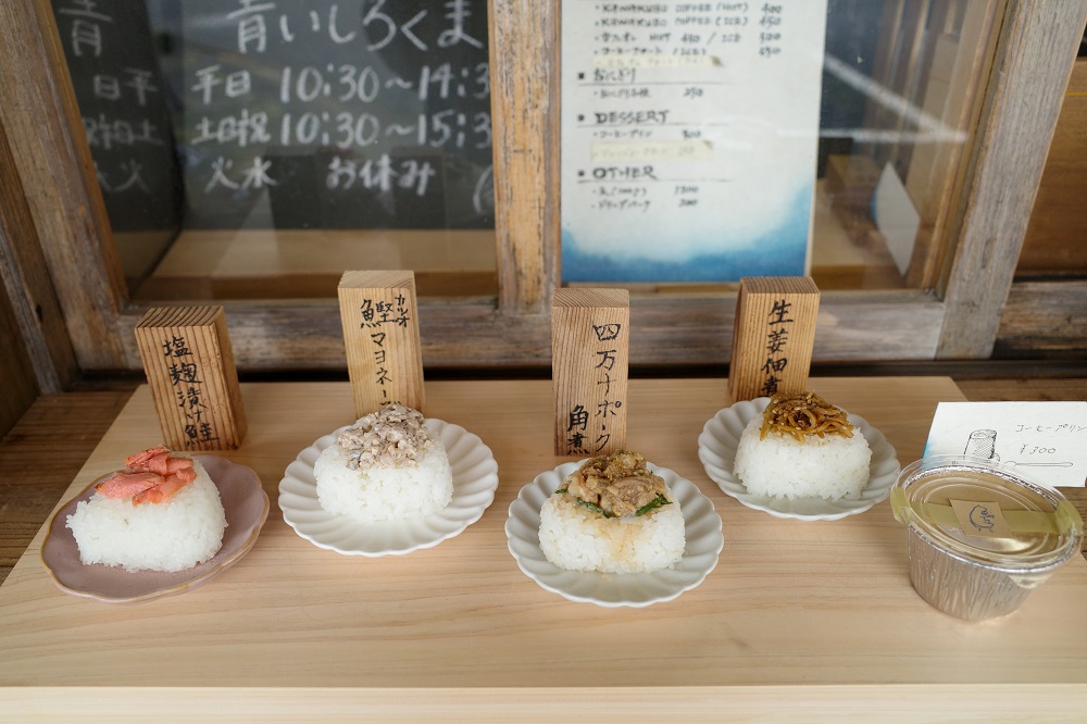 「青いしろくま」でしか食べられないおにぎりを提供したいという思いから、一手間、ふた手間かけたオリジナリティのあるおにぎりを作っています。