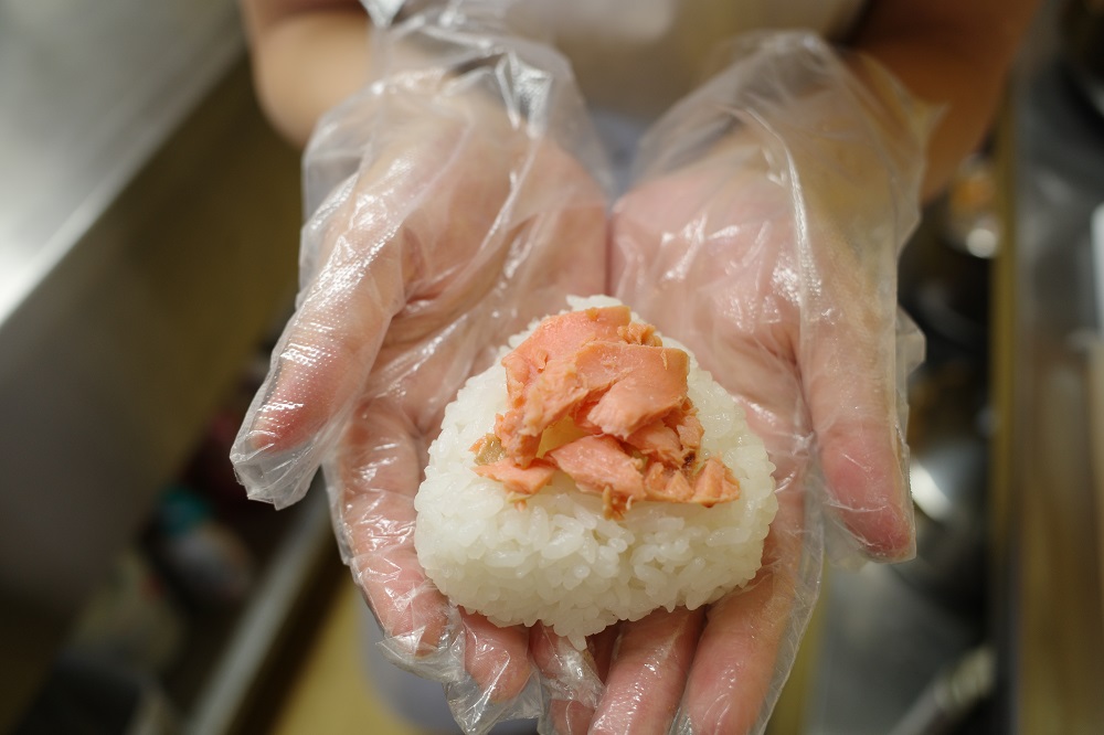 写真:おにぎりは注文が入るごとに、一つ一つ手作りで