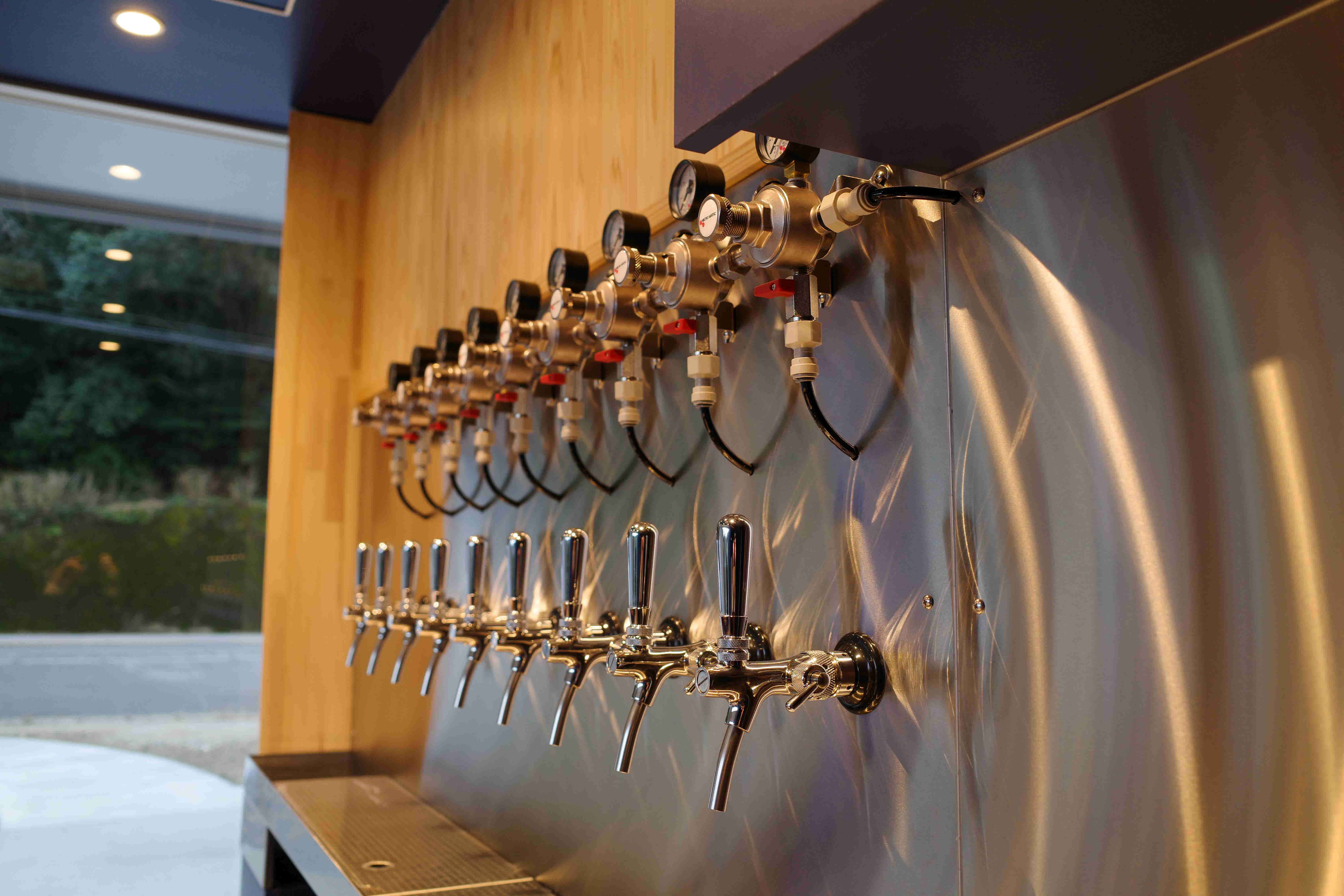 写真:工場併設のタップルームには、真新しいタップが並ぶ。