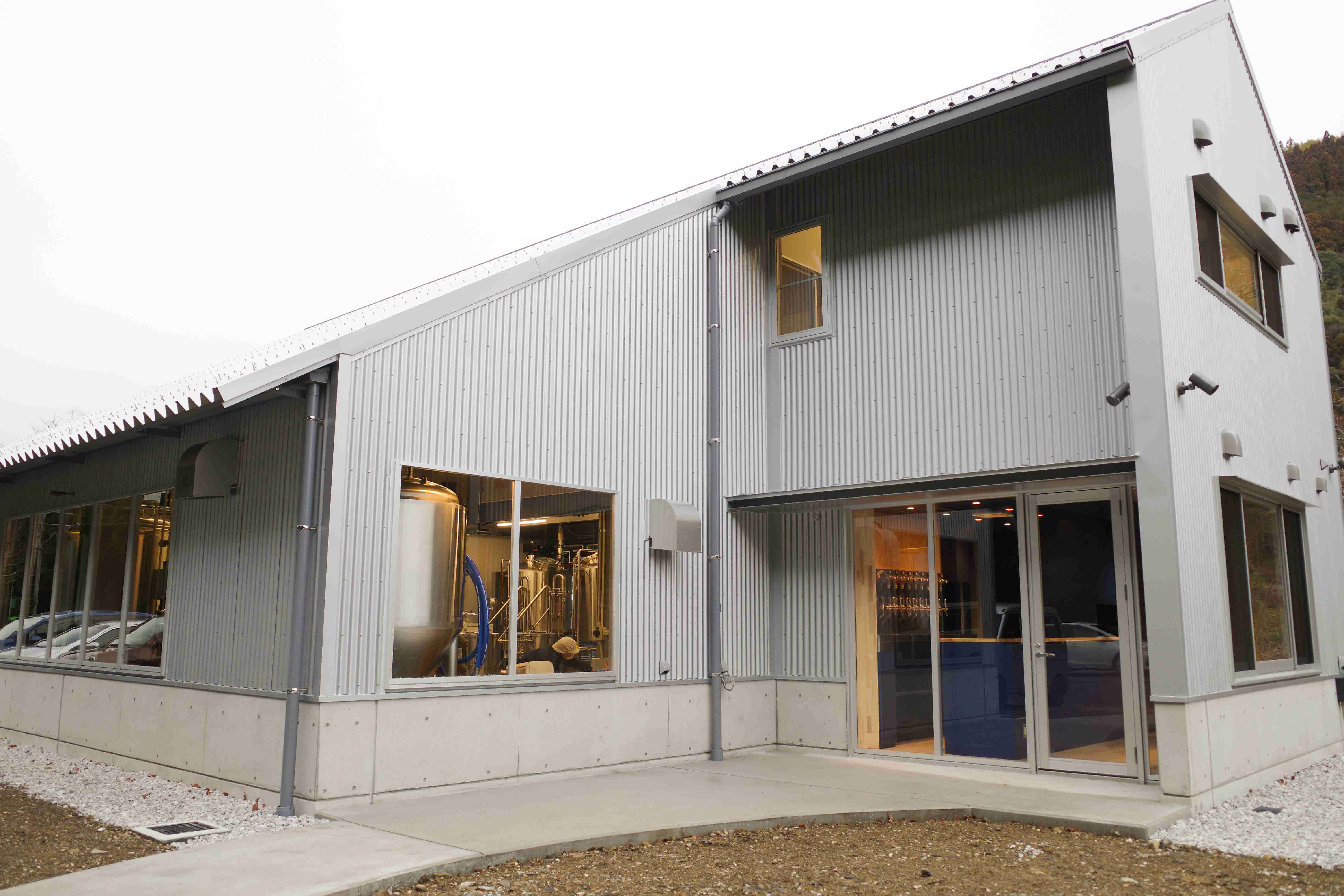 新社屋外観。向かって右側が4月オープン予定のタップルーム。