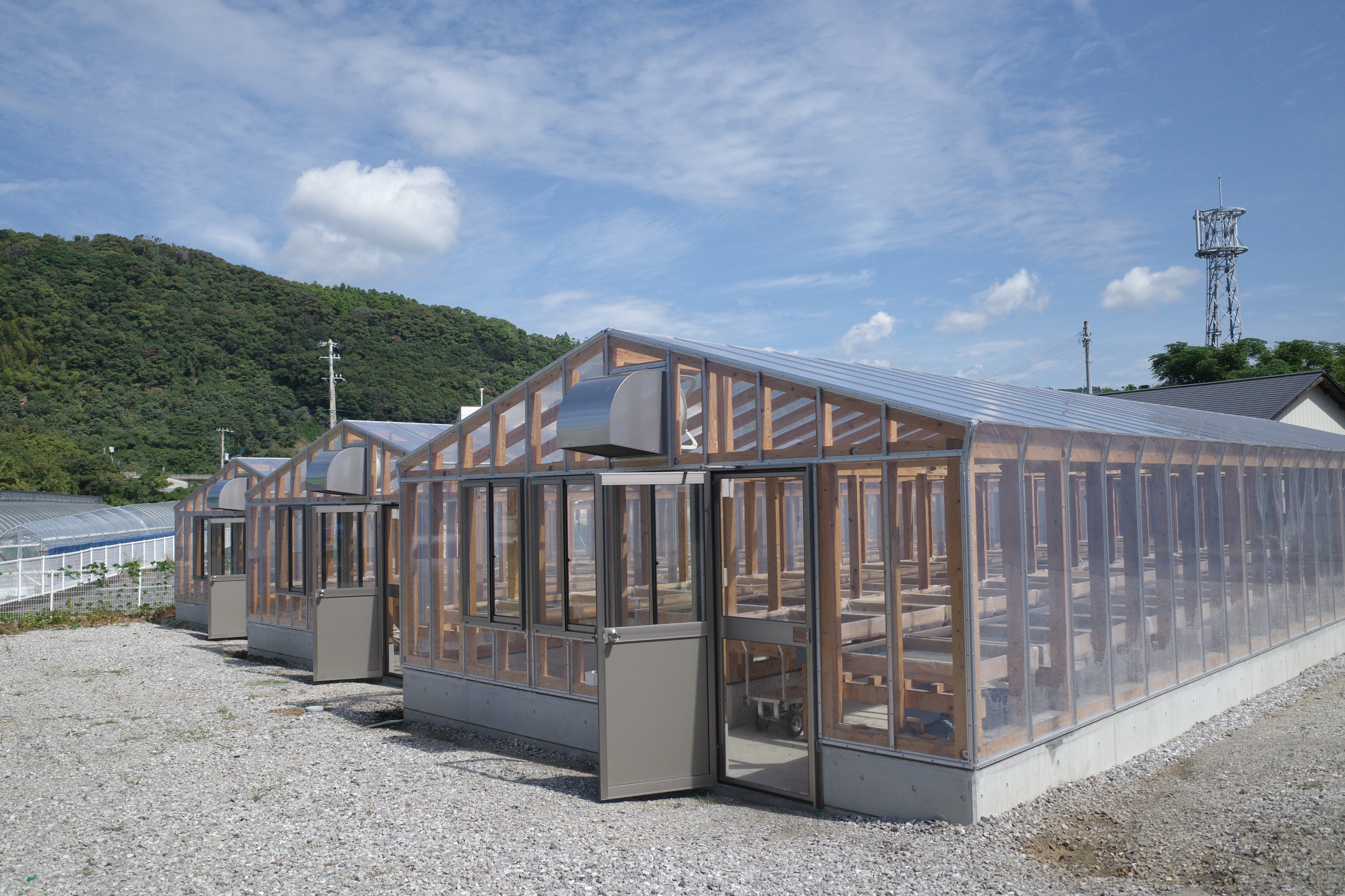 資材が高騰している影響でハウスの建築費は想像以上に高かったですが、自己資金や銀行からの融資、町の補助金も活用しながら3棟のハウスを建てることができました。建築費用を節約するため、事務所兼作業所の小屋は2人で2か月かけてDIYしました。2023年7月にハウスが完成し、9月には田野屋紫蘭として初めての塩が完成しました。
