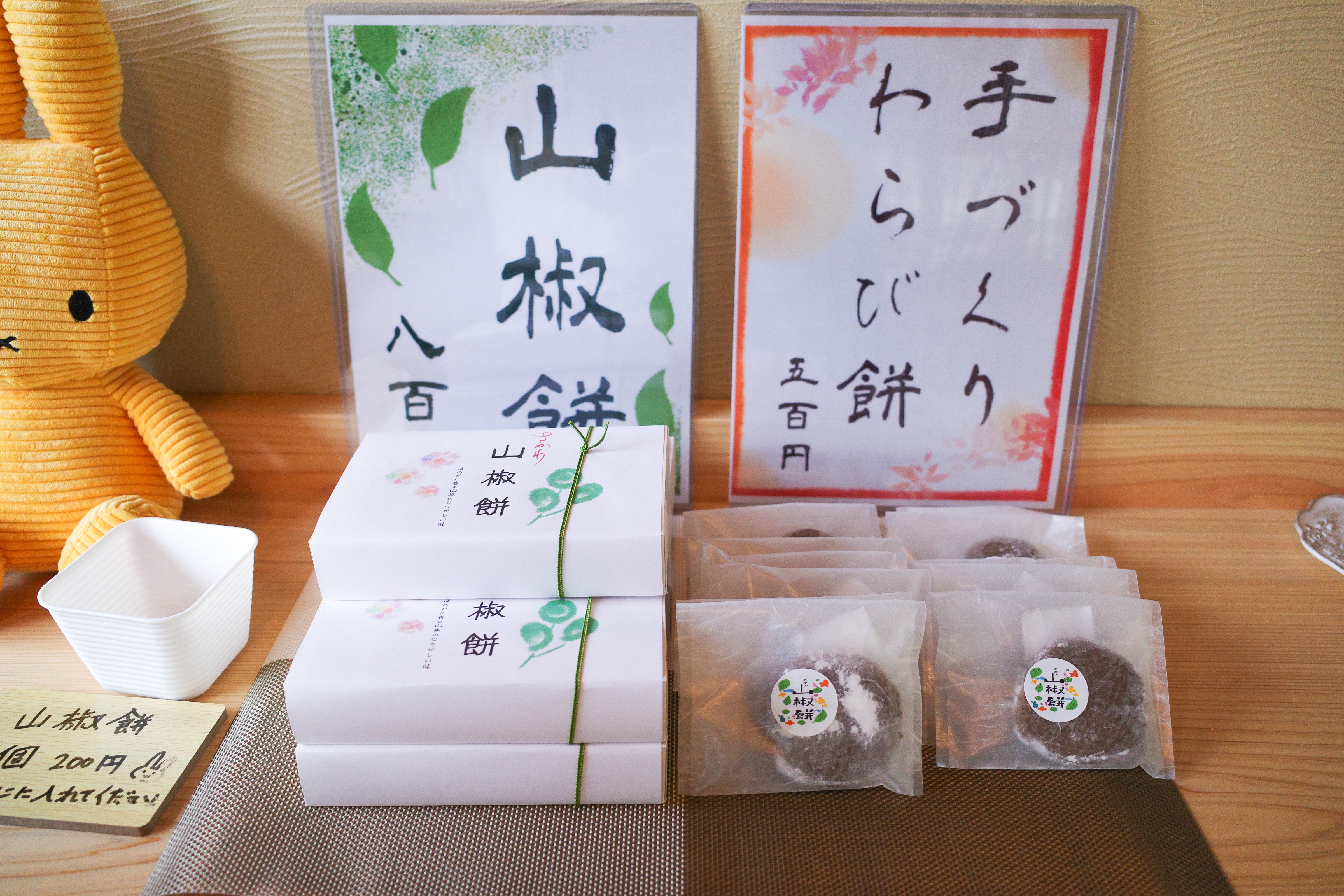お店の柱となる商品は、「わらび餅」と、佐川町の幻の名産品「山椒餅」の二つです。