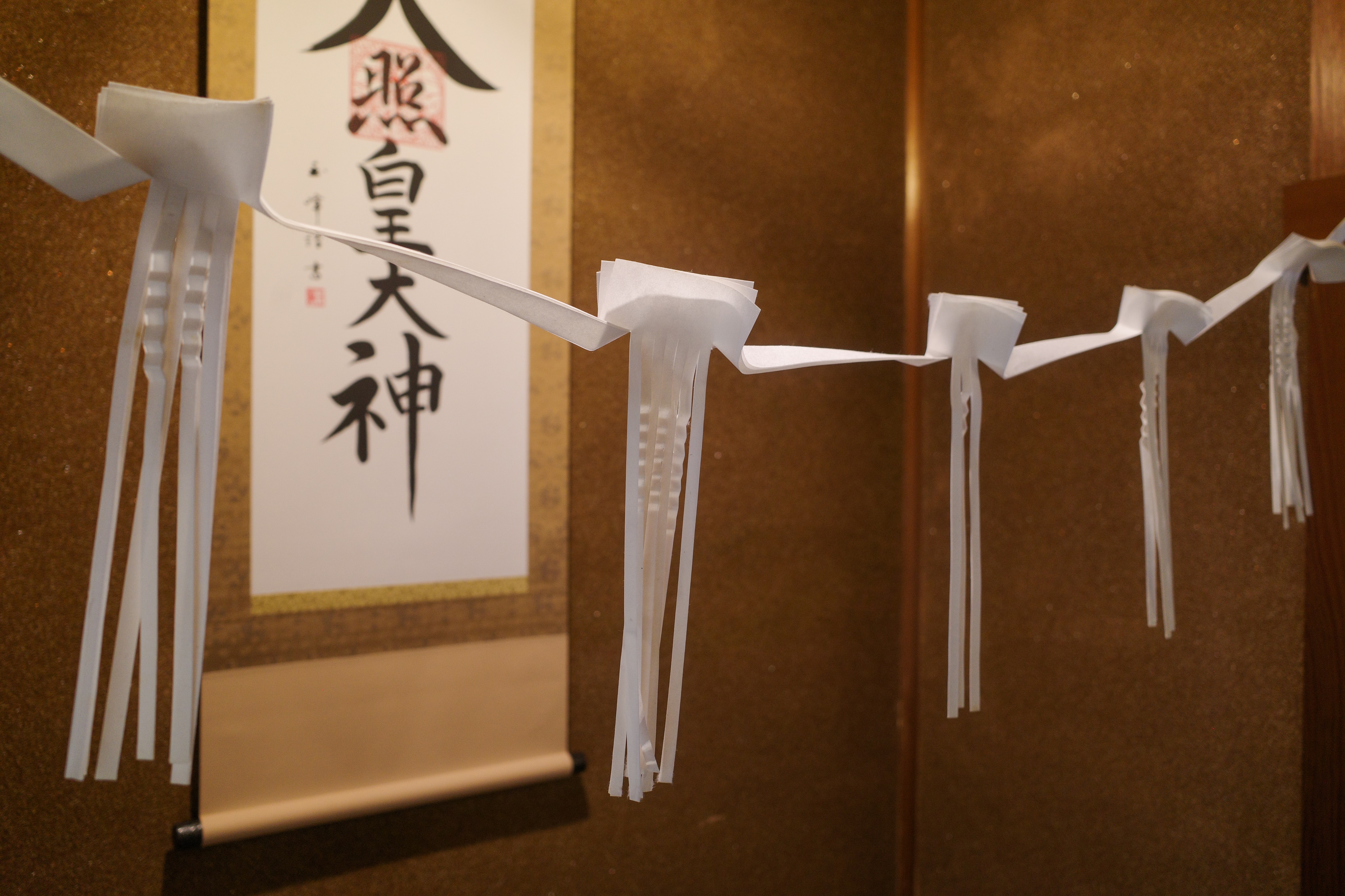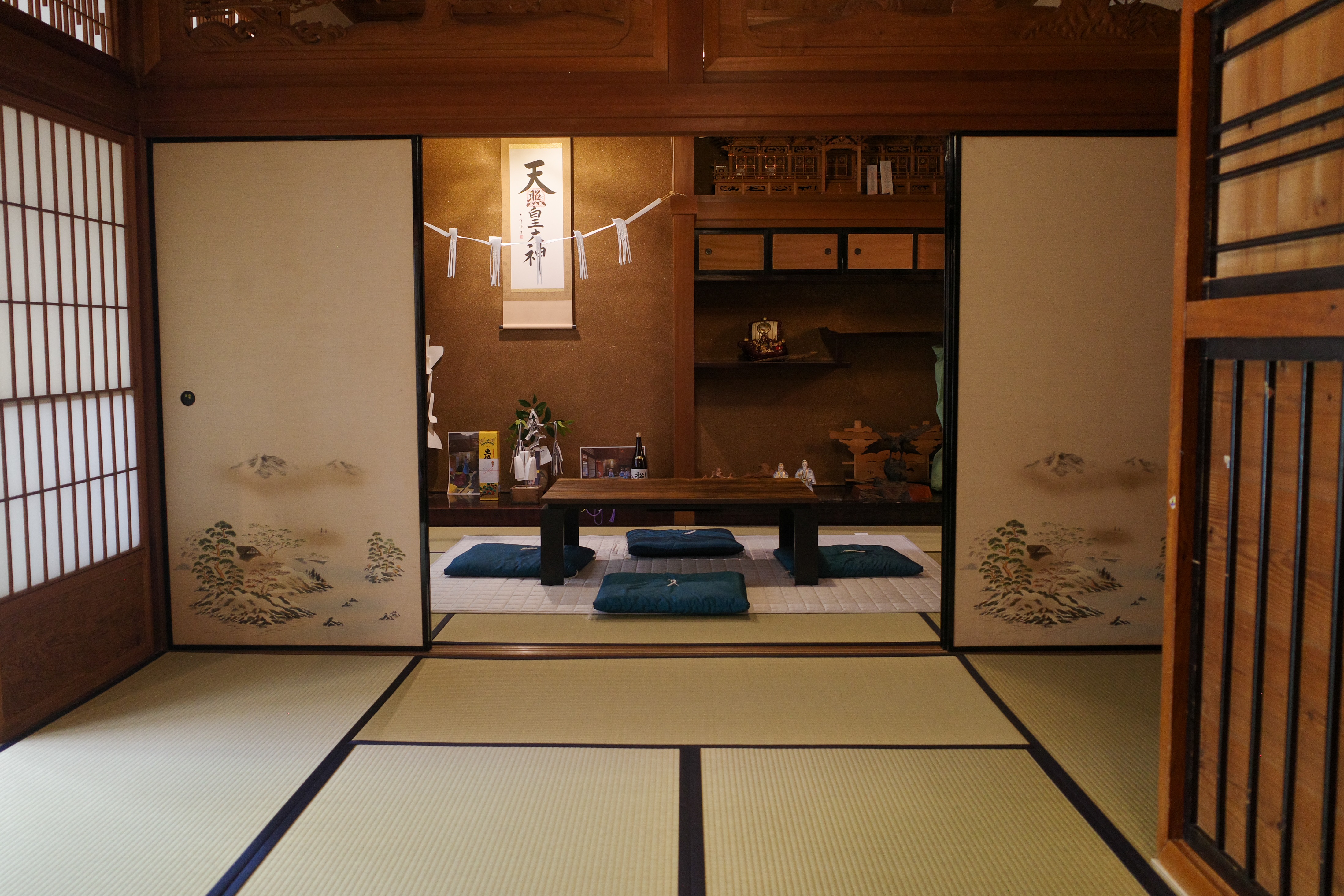 写真:まきの宿のお部屋。床の間は、いざなぎ流の装飾で整えられている
