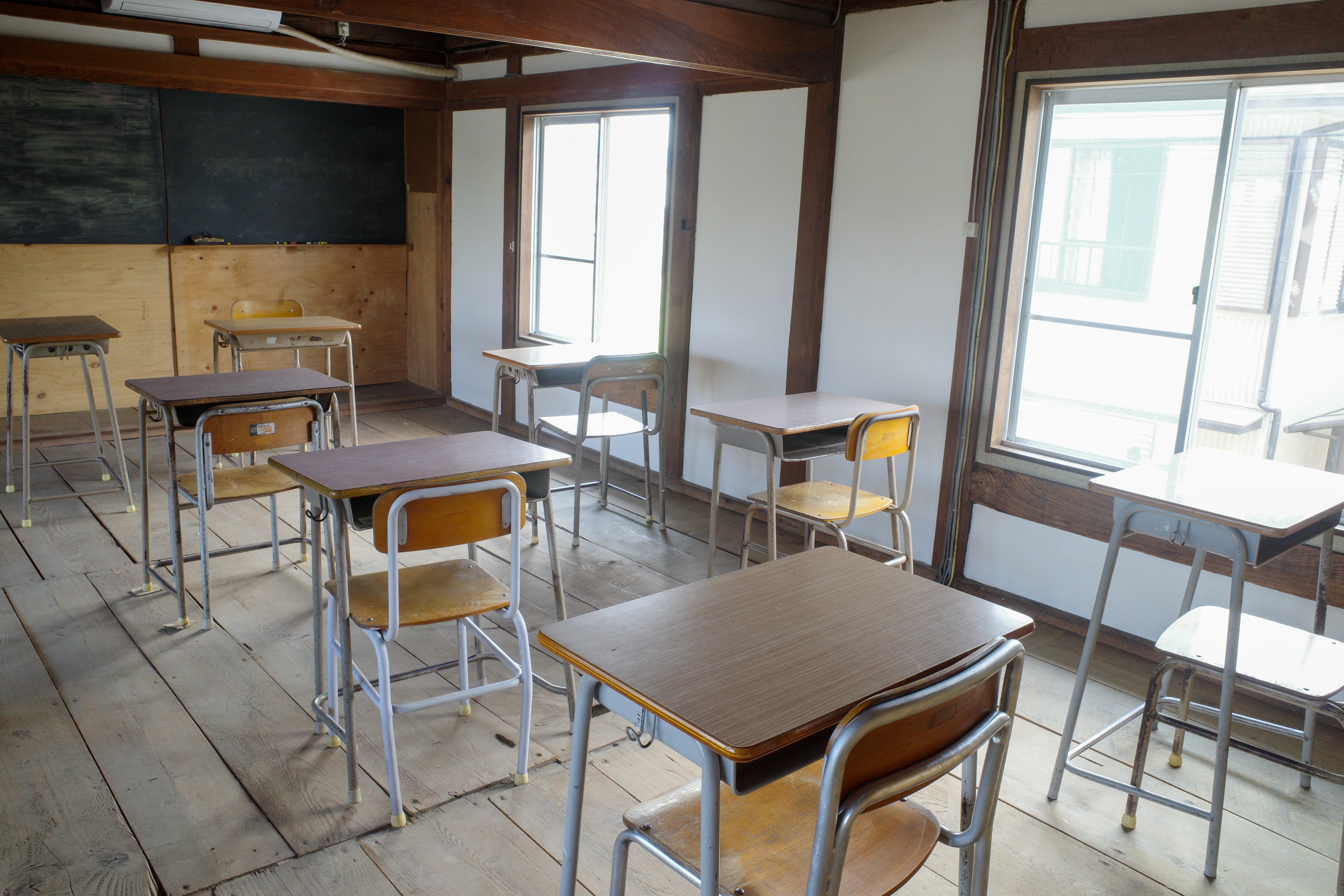 写真:学習塾が行われる2階スペースには、学習机が並ぶ