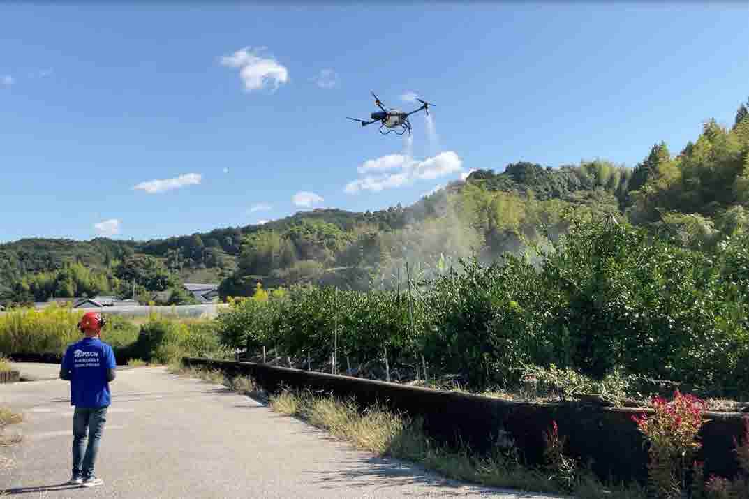 そして、ドローンの技術を学び、飛び込み営業もスタート。インターネットで『ドローン ゆず』と検索して出てきた北川村の団体に連絡してアポイントメントを取り、それを機に北川村での農薬散布が始まりました。