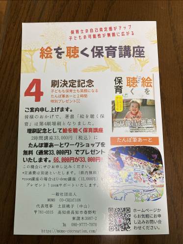 土居さんは、0~6歳までの子どもたちの「自分はできる」の自尊心を育てる【絵を聴く保育アドバイザー】などで幅広く活躍されています。