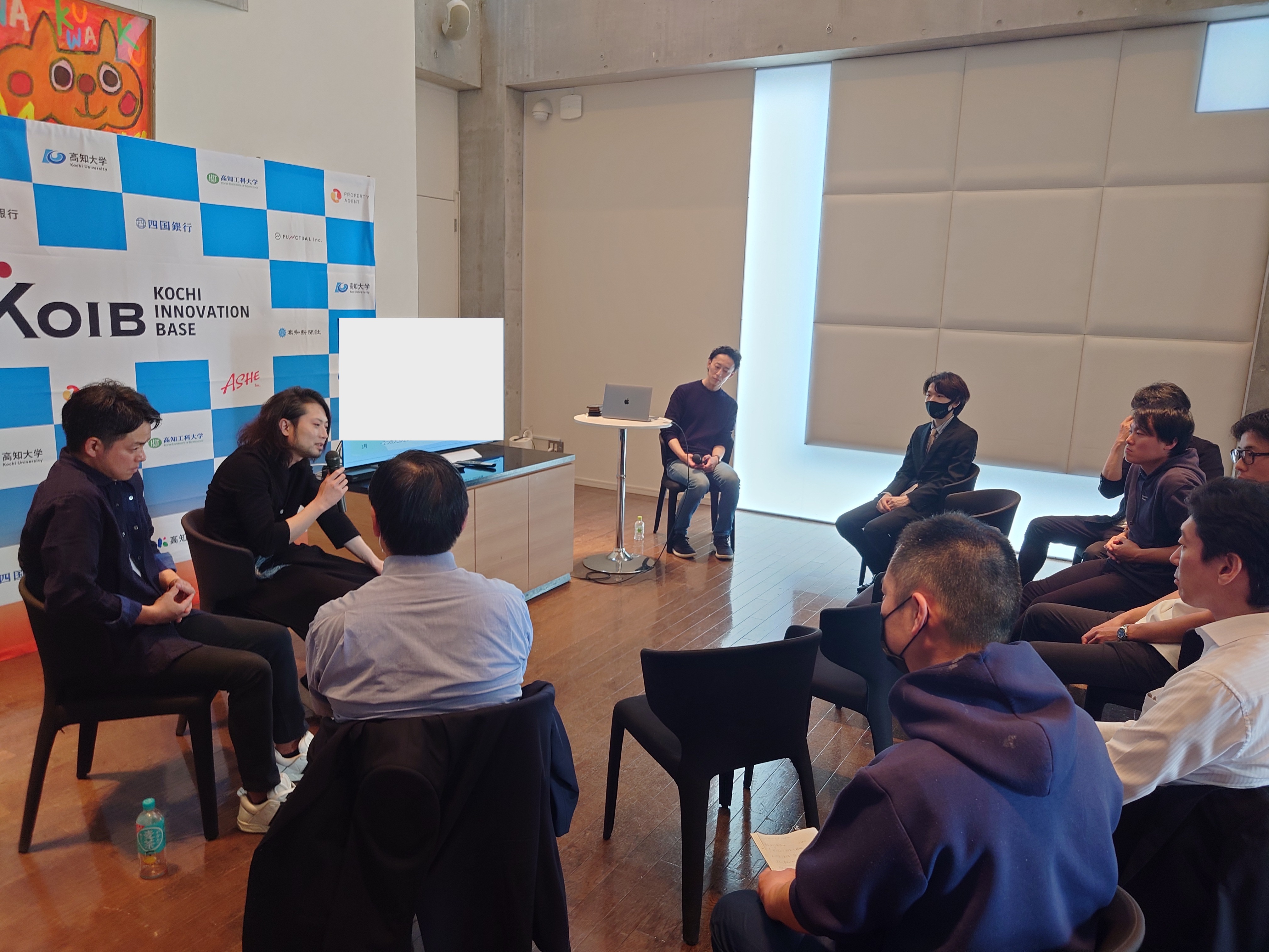 マンツーマンセッションを受けられた起業家のみなさんに成果報告をしていただくとともに、トークセッションを設けて、振り返りと高知の将来性を共有しました。