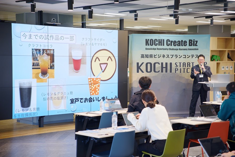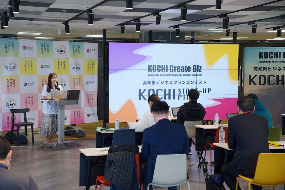 2024年2月10日(土)、高知新聞社本社社屋8階特設会場において、高知県ビジネスプランコンテスト「Kochi Start-up Pitch」を開催しました。書類審査を勝ち抜いた高知県内で起業や新規事業展開を目指す12組が登壇し、高知県の課題解決・資源活用をテーマにビジネスプランを披露しました。