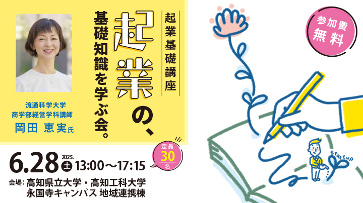 流通科学大学で起業について講義を行っている、岡田恵実氏を講師にお招きし、起業するうえで最低限必要な知識について、ワークを交えながら学びました。