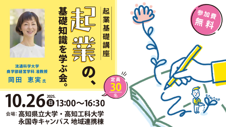 本講座では、流通科学大学の岡田恵実氏を講師に迎え、起業の基礎知識について学びました。「起業を取り巻く環境」や「資金調達の方法」など、これから起業を目指す方にとって欠かせないポイントを、実例を交えながら丁寧に解説いただきました。